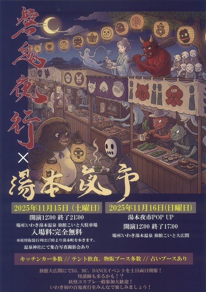 - 磐鬼夜行×湯本夜市 2025/11/15(SAT)~11/16(SUN)